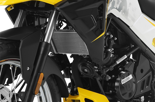 エンジンの温度を安定して制御でき、高回転高出力化が可能な水冷エンジンを採用